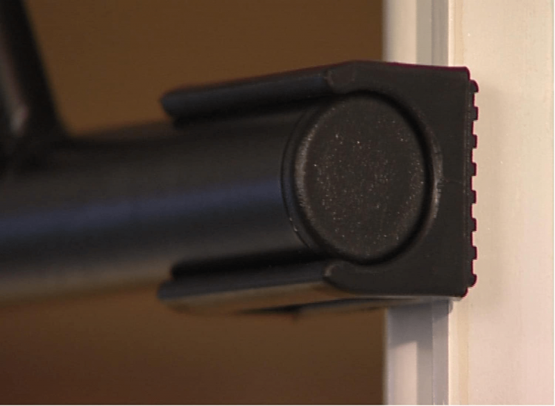 pull-up bar doesn´t need fixing materiall. You can simply hang it into the door frame and it can be put away again after the training.