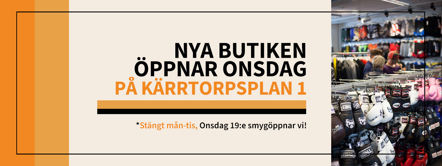 På kärrtorpsplan 1 i Stockholm hittar ni vår fysiska butik. 400kvm öppen yta med kampsportsutrustning, träningsartiklar, kläder, kosttillskott och hälsosamma livsmedel. Vi har över 15 års erfarenhet inom försäljning av kampsportsartiklar, både i butik och på nätet.