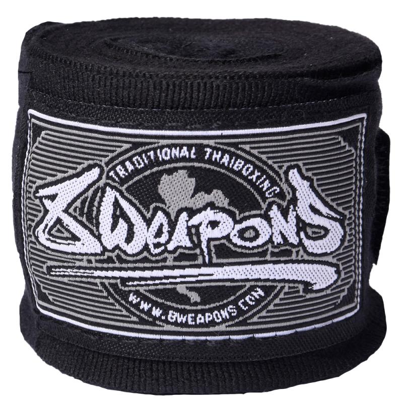 Soft cotton semi stretch hand wraps from 8 Weapons, black color.