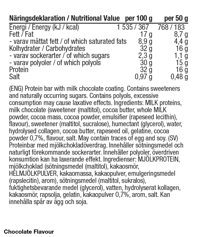 Protein bar with good taste and consistency, 16g protein per bar.
