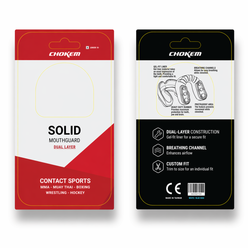 CHOKEM: JUNIOR SOLID MOUTHGUARD DUAL LAYER - WHITE/BLUE
