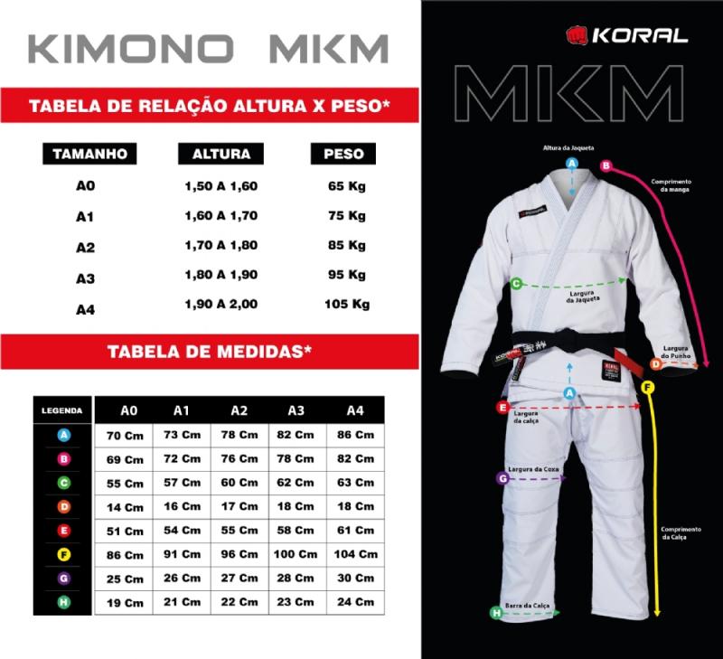 Kimono manufactured with high quality and technological materials that guarantee durability and resistance. The MKM model was developed by the most experienced professionals in the field, thinking about offering an efficient and high-performance piece for athletes. The Kimono MKM 2.1 has a comfortable fit that fits perfectly to the body and follows the IBJJF AND CBJJ standards, making it ideal for competitions, and is also recommended for daily training due to its comfort and resistance. Product characteristics: Pre-shrunk - The product undergoes thermal treatment where it reduces the possibility of shrinking; Antimicrobial hygienic collar Application of patches bringing a minimalist design that follows market trends; Pants with reinforcement on the knees and between the legs, made of extremely durable and comfortable Ripstop, which uses dyeing techniques that prevent fading; It uses dyeing techniques that avoid fading;