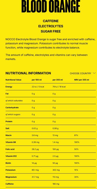 NOCCO: ELECTROLYTE ENERGY DRINK BLOOD ORANGE - 355ml