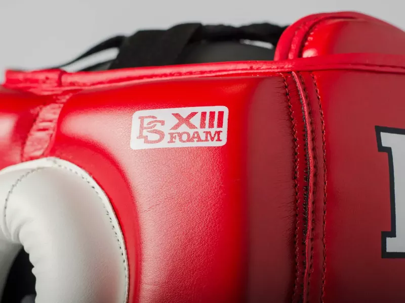 Upper material made of durable artificial leather, PSXtraFoam foam padding, lining made of silky, skin tolerant polyester mesh , hook & loop fastening and lacing for head adaptation.