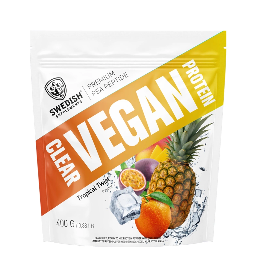 Clear Vegan Protein från Swedish Supplements är ett 100% växtbaserat protein gjort på ärtpeptid.