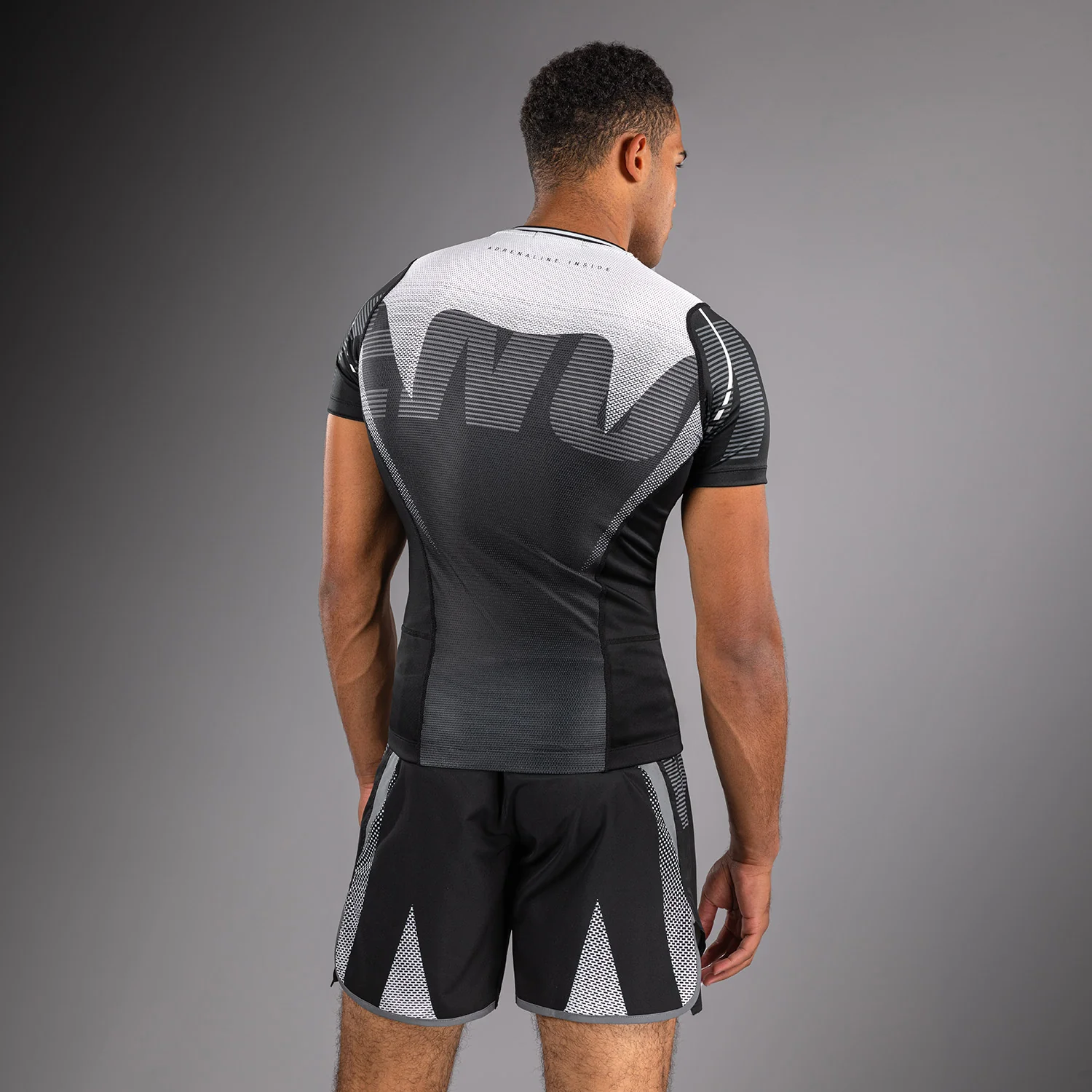 VENUM: ADRENALINE SHORTS SLEEVE RASHGUARD - BLACK / SILVER GREY