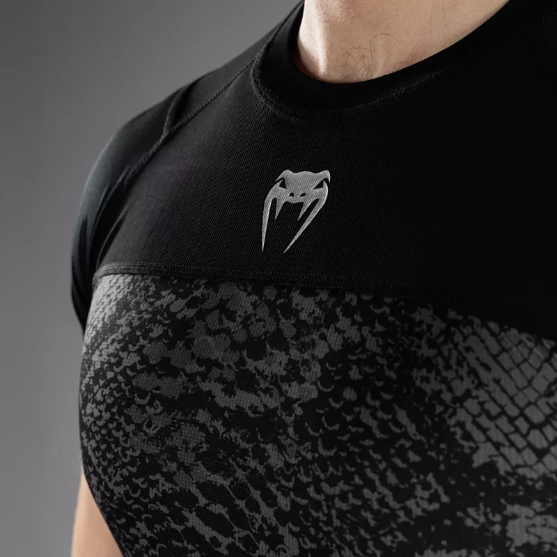 VENUM: G-FIT SCALES SHORTS SLEEVE RASHGUARD - CHARCOAL / BLACK / GREY