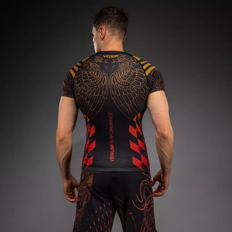 The Venum’s Quetzal Fury Men's Short Sleeve Rashguard serves as a second skin, offering protection from scrapes and burns during grappling.