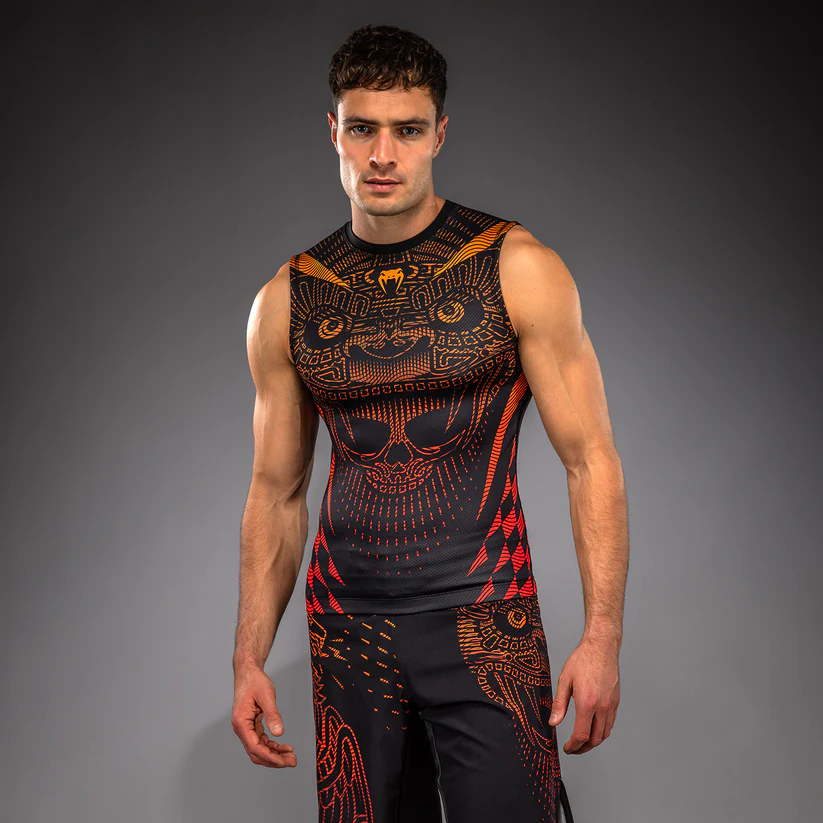 The Venum’s Quetzal Fury Men's Sleeveless Rashguard serves as a second skin, offering protection from scrapes and burns during grappling.