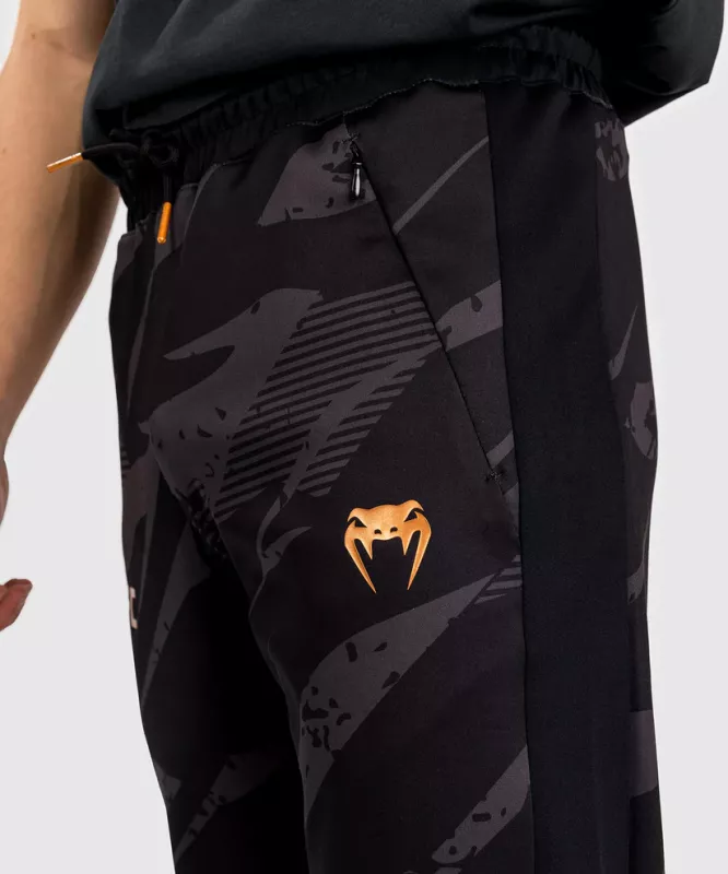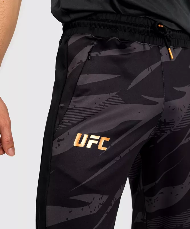 UFC Adrenaline by Venum Men’s Fight Week Pant features zip side pockets and a drawstring waistband for tailored comfort. Lightweight with just the right amount of stretch, these pants are designed to keep up with athletes who are on the move. Its bold camouflage print, with bronze Venum and UFC logos, is inspired by athletes who step into the Octagon, ready to strike and counter strike.