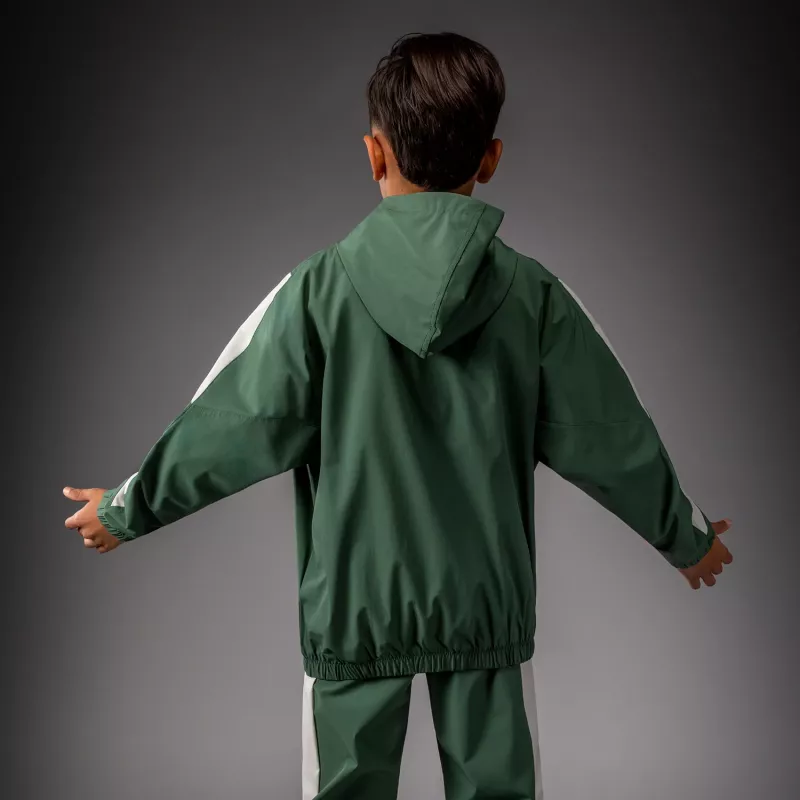 Introducing Vectra, designed for athletes who demand performance and style both in and out of the gym. Built with lightweight yet durable fabric, this kids set is crafted to keep up with your young athlete. The Vectra Kids Track Jacket is a full-zip hooded jacket with open side pockets. Elasticated cuffs and hem add structure and support to this lightweight jacket. The relaxed fit gives plenty of space for layering. Pair this jacket with the joggers from the same collection for a complete outfit.