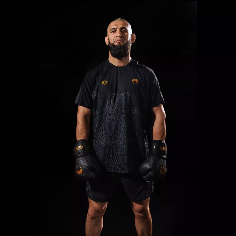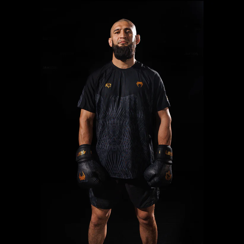 Inspired by the spirit of the wolf (“Borz” in Chechen) the Venum x Chimaev collaboration collection channels Chimaev’s relentless drive into Venum's high-performance gear. With sublimated fur-textured graphics and a sleek black-grey-gold palette, this full range of fightwear, footwear, and lifestyle apparel is built to endure the daily grind of training for the top. From the cage to the street, this collection is made for athletes who hunt down every goal.