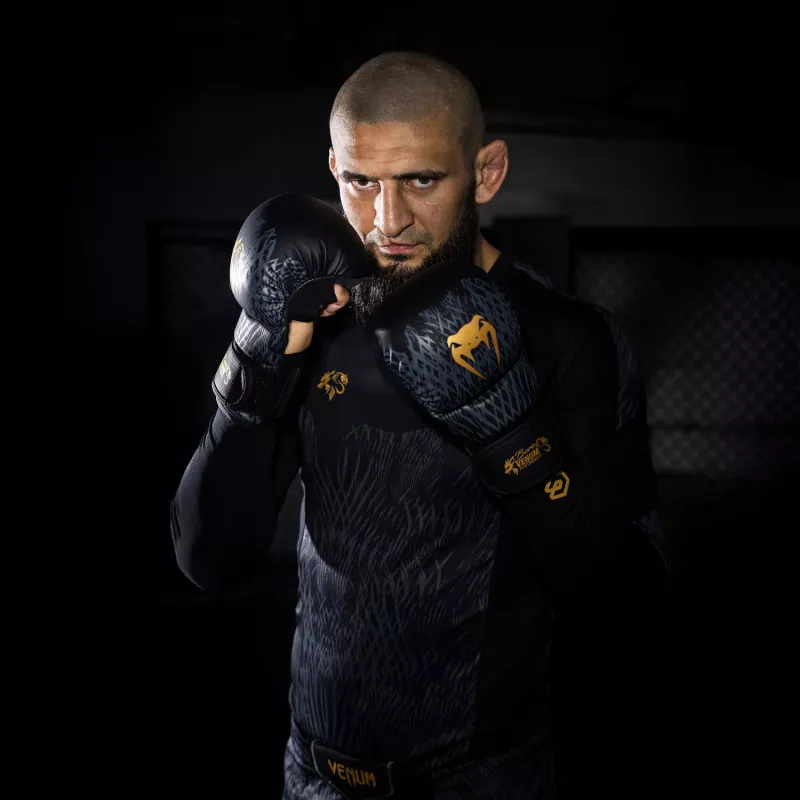 Inspired by the spirit of the wolf (“Borz” in Chechen) the Venum x Chimaev collaboration collection channels Chimaev’s relentless drive into Venum's high-performance gear. With its sleek black-grey-gold palette and technical materials, this full range of fightwear, footwear, and lifestyle apparel is built to endure the daily grind of training for the top.