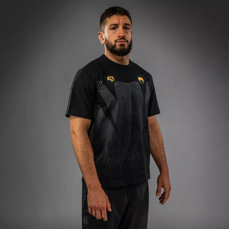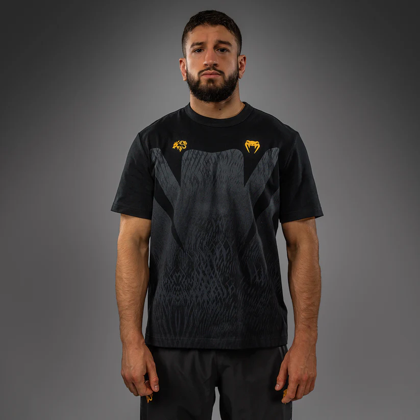 Inspired by the spirit of the wolf (“Borz” in Chechen) the Venum x Chimaev collaboration collection channels Chimaev’s relentless drive into Venum's high-performance gear. With its sleek black-grey-gold palette and technical materials, this full range of fightwear, footwear, and lifestyle apparel is built to endure the daily grind of training for the top.