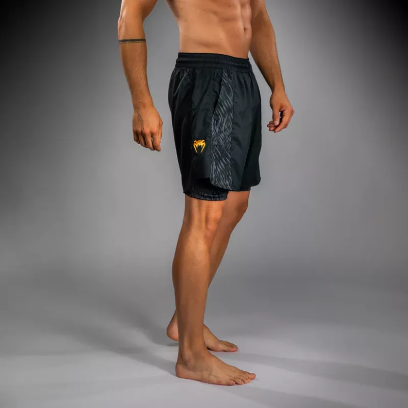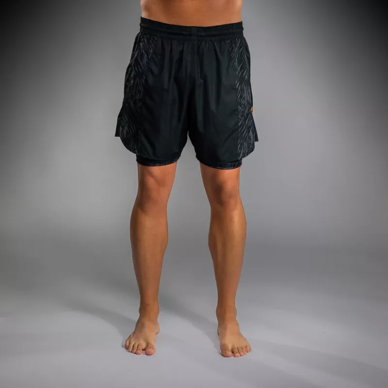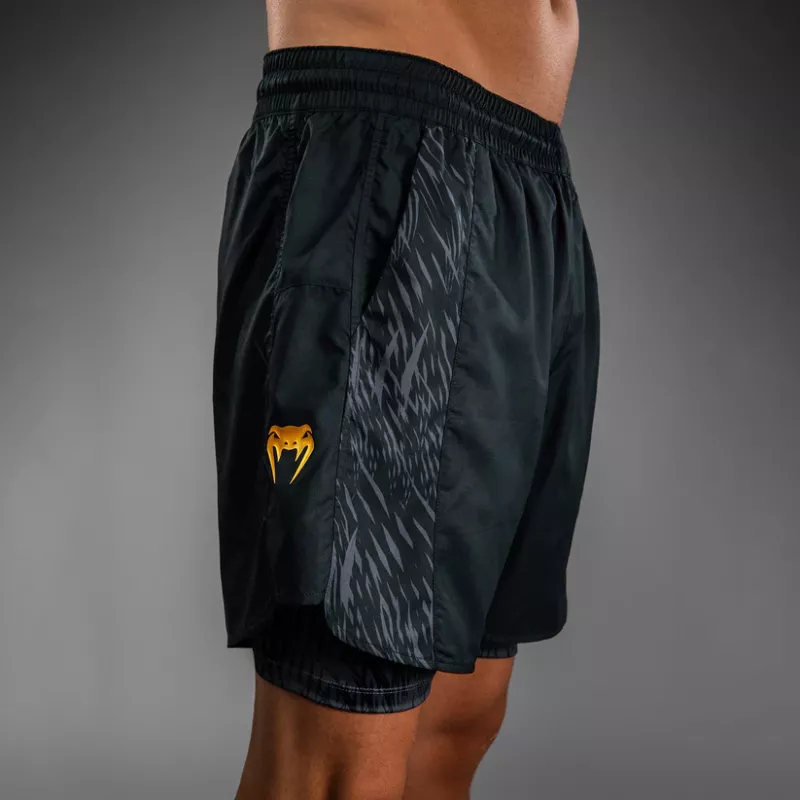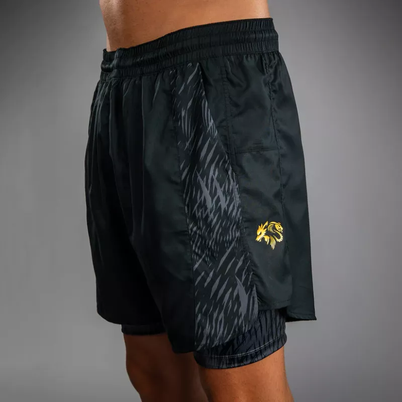 The design of this short features sleek black and grey sublimated graphics that evoke the fur of the wolf. Pops of gold co-branding point to the power of this MMA collaboration.