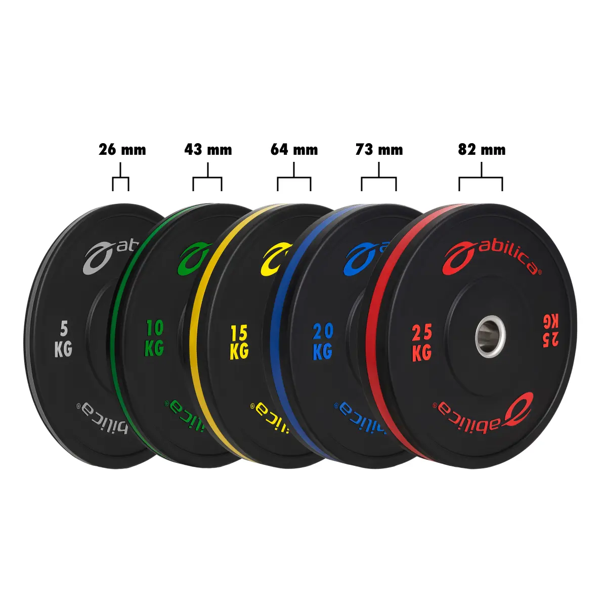 Letar du efter bumpervikter av hög kvalitet som klarar tuff och intensiv träning? Abilica BumperPlates är gjorda för dig som tränar hårt – och låter vikterna landa därefter. De är tillverkade av gummi med hög densitet och håller olympisk standard med 50 mm öppning. Perfekta för tunga lyft med dropp.