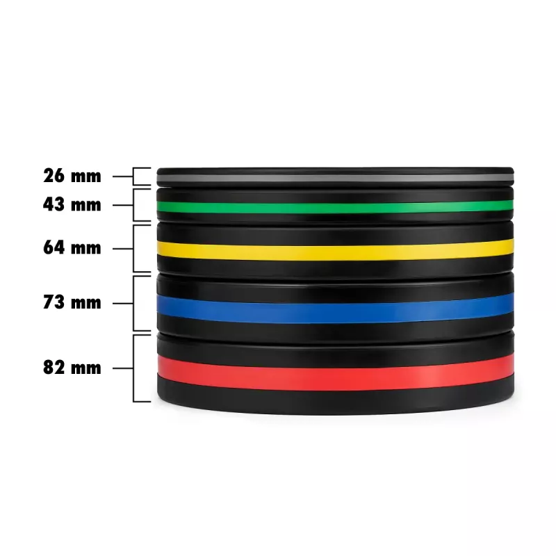 Varje skiva har färgade detaljer och en tydligt präglad viktangivelse vilket gör det enkelt att snabbt identifiera vikten. Bumpervikterna har en viktavvikelse på endast ±1 %.