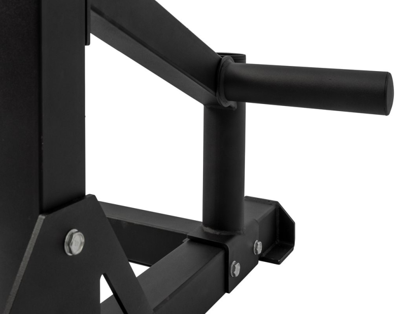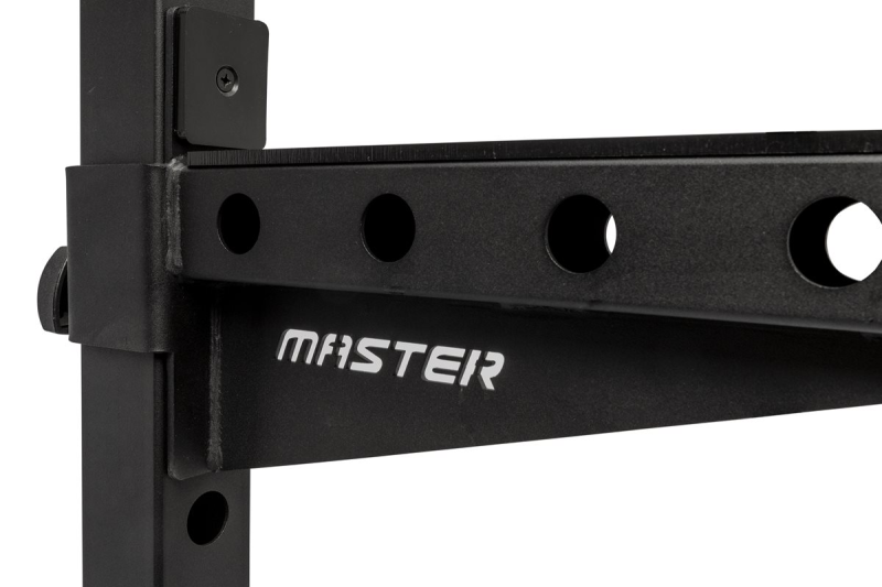 Det finns två stadiga säkerhetsarmar som man exempelvis placerar på lämplig höjd vid bänkpressövning. Överliggaren består av chinsstång på en lagom höjd. Både J-hook samt säkerhetsarmarna har nylonbotten vilket skyddar skivstången från onödigt skav.