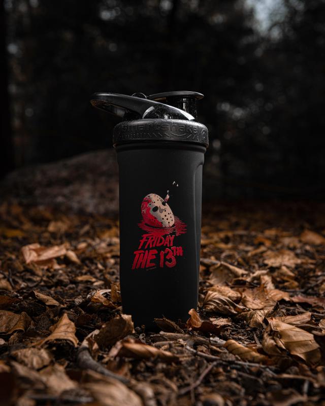 Ladda dina träningspass med ren skräck! Denna kusliga shaker pryds av den ikoniska Friday the 13th-masken – för inget säger styrka som en dos Jason Voorhees. Är du modig nog att ta den till gymmet?