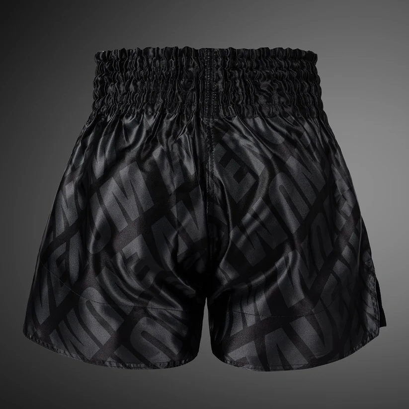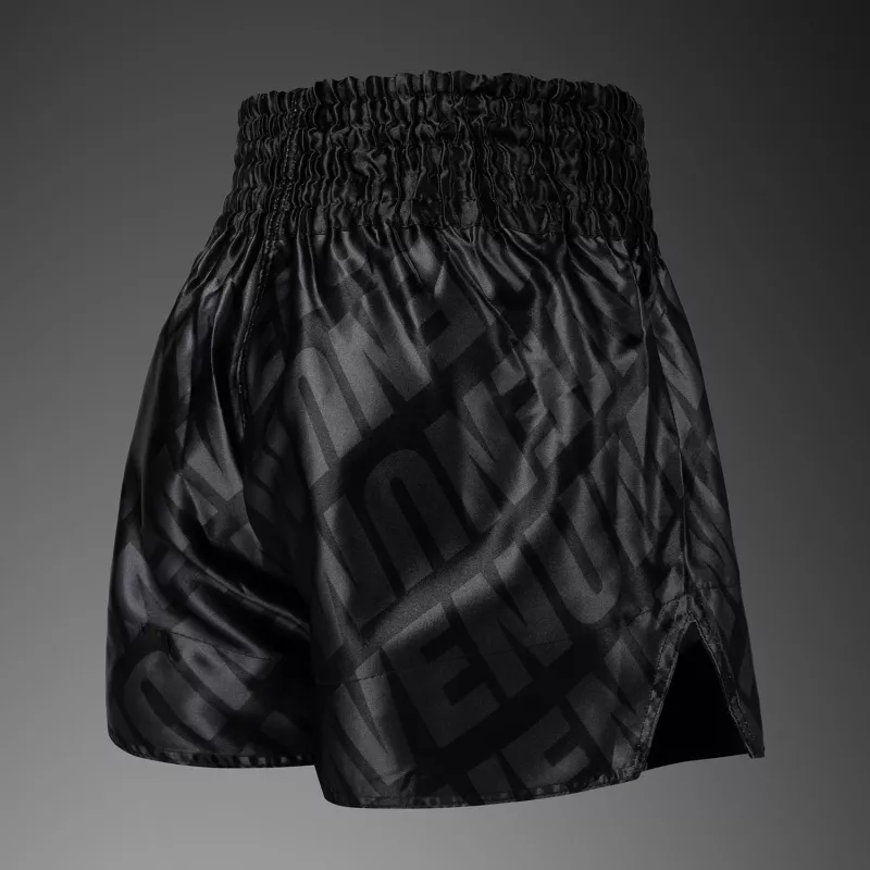 Slitsar i sidorna gör det enkelt att utföra höga sparkar och snabba rörelser, medan den breda elastiska midjan ger stabilt stöd och säker passform. Shortsen har Venum-logotyp i midjan och över fronten för en klassisk och sportig look.