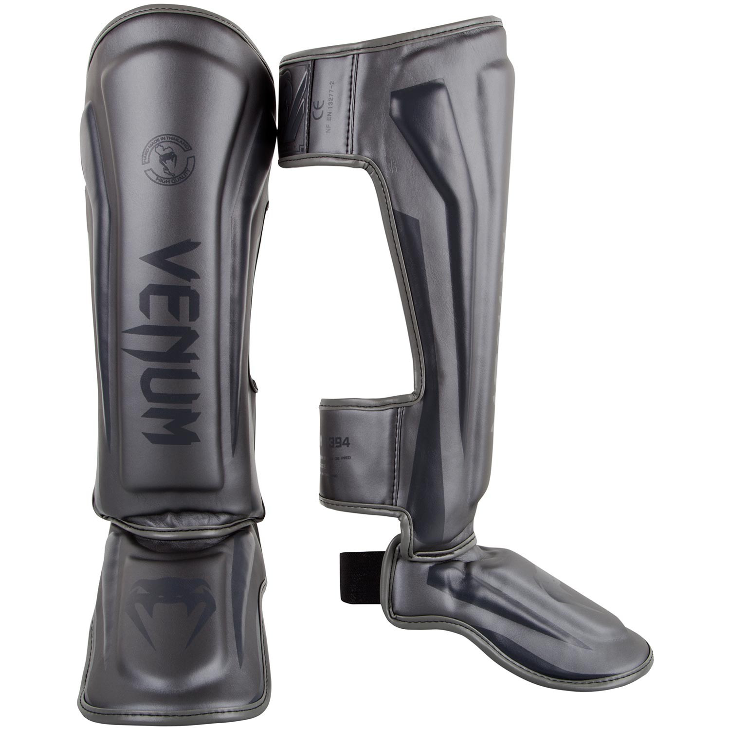 Lätta och sköna benskydd Elite grå från Venum tillverkade i Thailand.