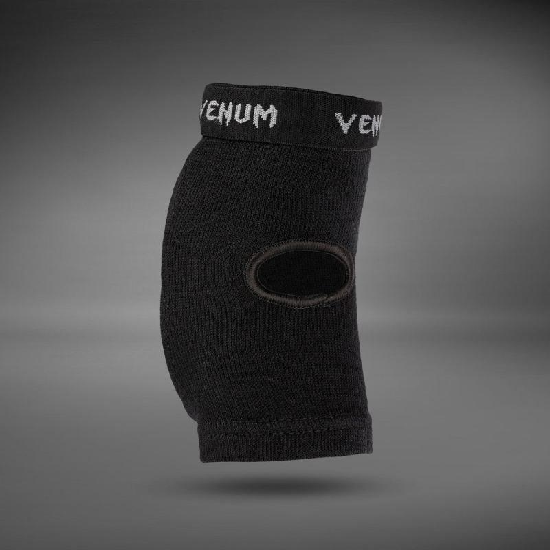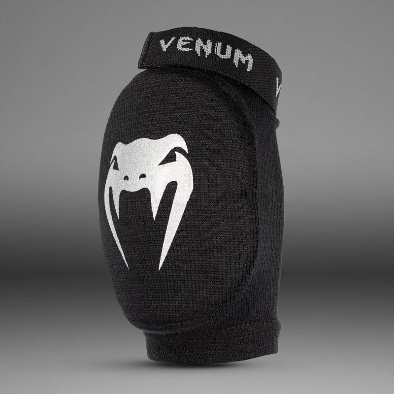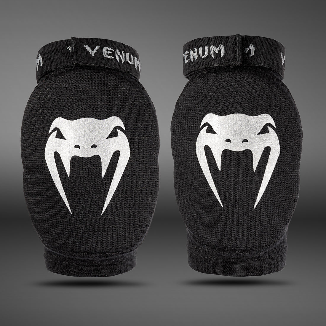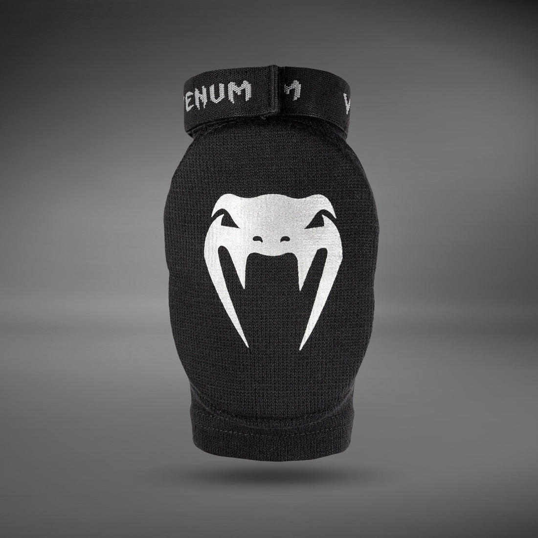 Armbågsskydd från Venum i svart/vit färg. För Thaiboxning, MMA och andra kampsporter.