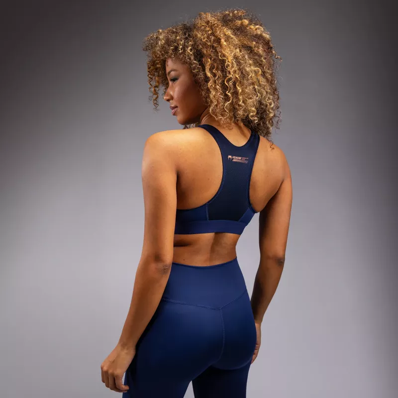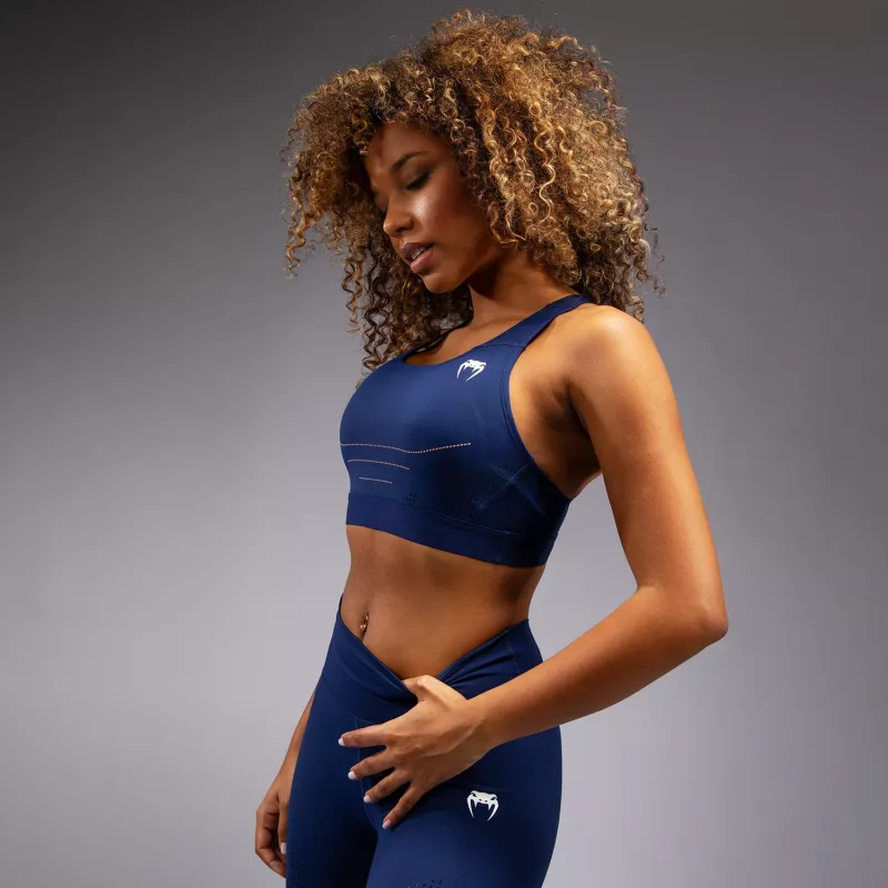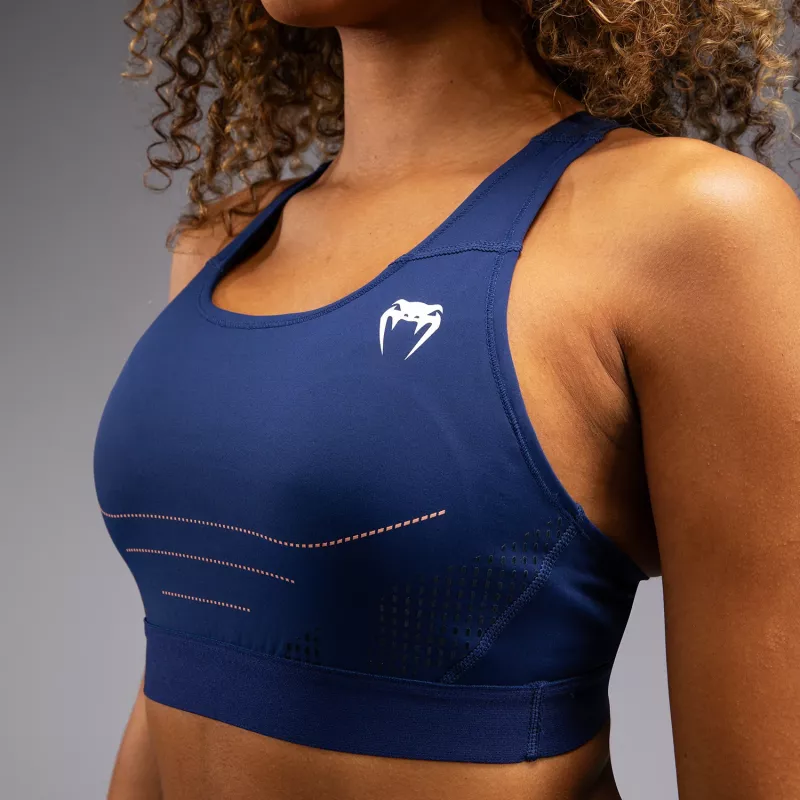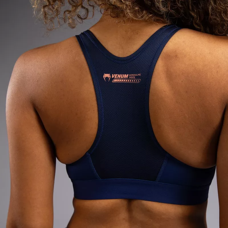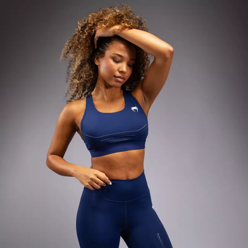 Venum Technical 3.0 sport-bh för kvinnor i Night Blue är en klassisk sport-bh med brottarrygg. Perfekt för medelintensiva aktiviteter som boxning, styrke- och konditionsträning samt cykling.