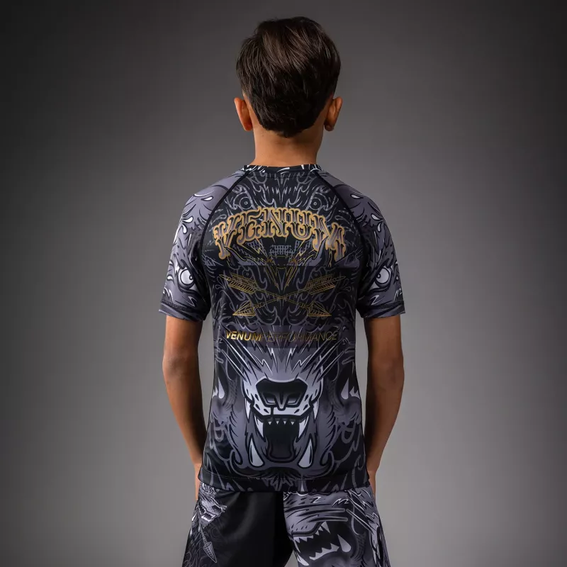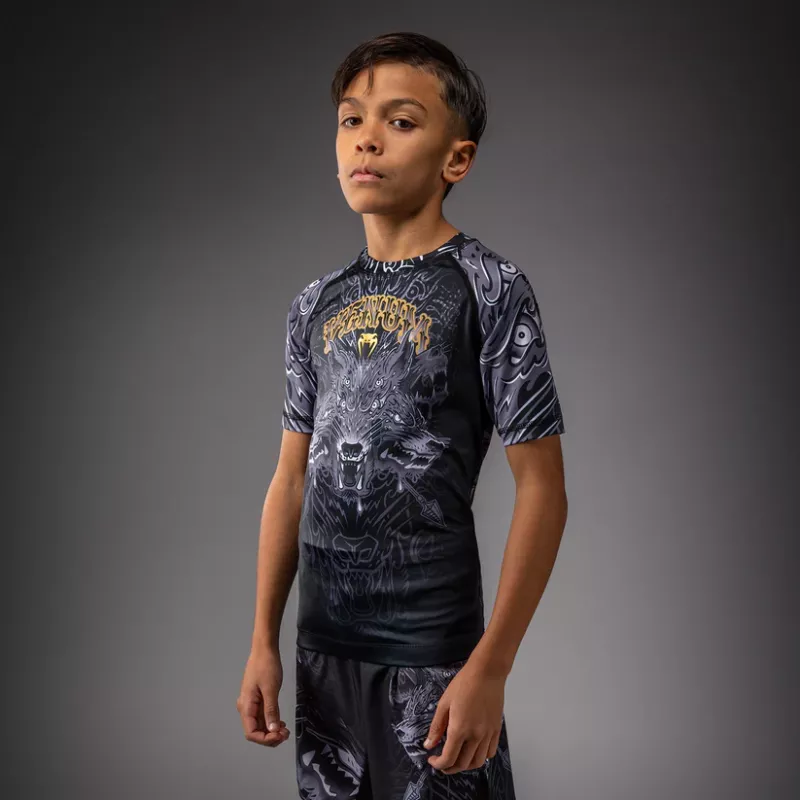 VENUM: WOLF ATAK KIDS SHORT SLEEVE RASHGUARD - SVART/GRÅ