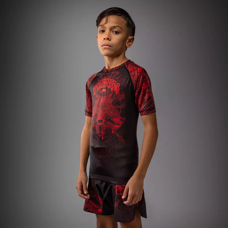 VENUM: WOLF ATAK KIDS SHORT SLEEVE RASHGUARD - SVART/RÖD