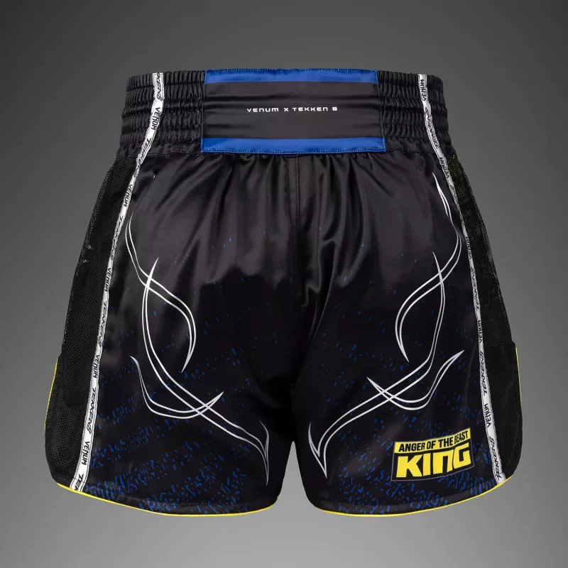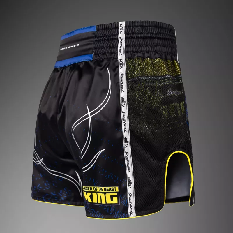Tekken 8 Muay Thai-shorts inspirerade av King, med lätt material, meshpaneler och sidoslitsar för maximal rörlighet.